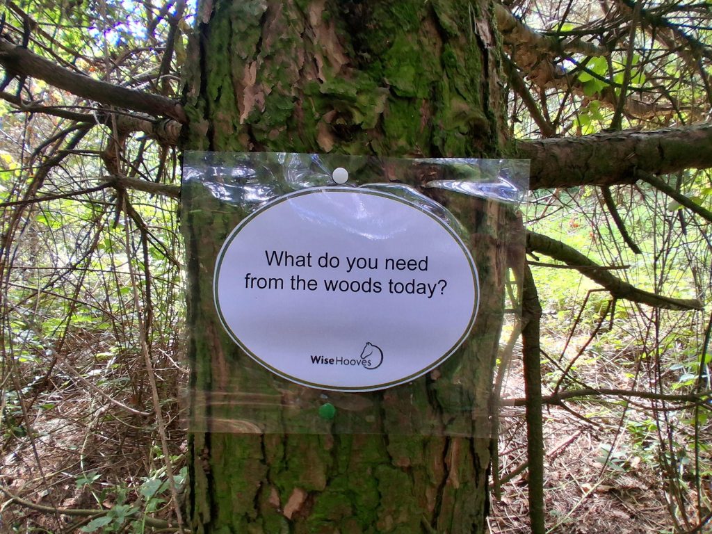 We have various prompts pinned on trees around the woods and clients can choose whether or when to read and respond to them. Examples include: